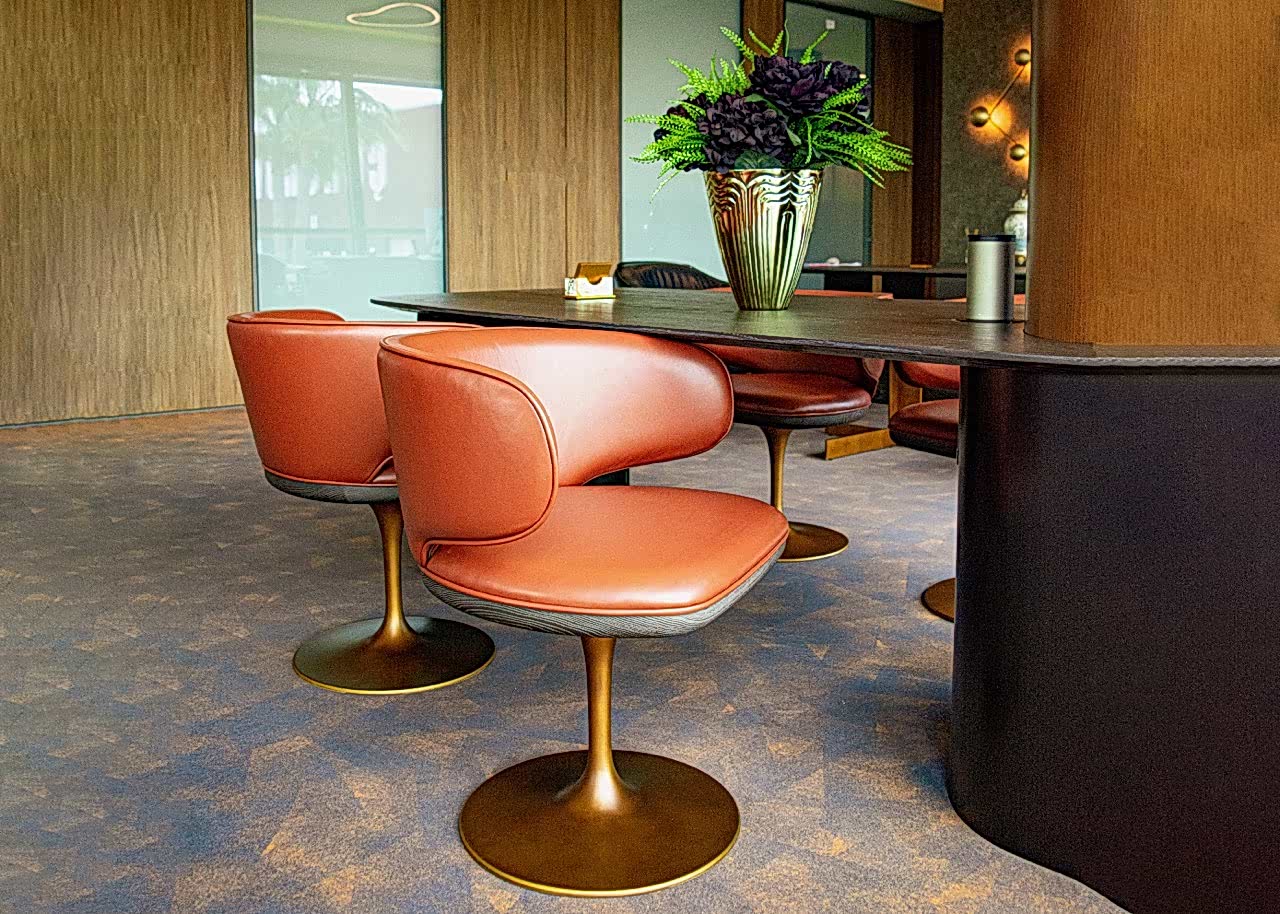 Proje kapsamında yer alan hareketli mobilya çözümleri, Nossa Mobilya tarafından gerçekleştirilmiş; mekânın mimari diliyle uyumlu, fonksiyonel ve yüksek kalite standartlarına sahip üretimler ile bütünlük sağlanmıştır. Detaylarda kurulan hassas denge, idari yapının kurumsal kimliğini destekleyen bir atmosfer sunar.