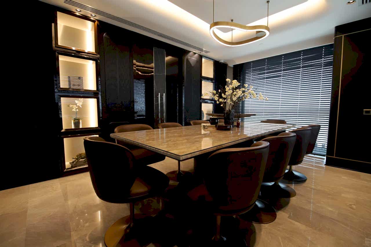 Mermer, mekânın ana malzeme dili olarak güçlü ve zamansız bir etki yaratırken; yüzey geçişleri, mobilya formları ve ışık kurgusu ile dengeli ve rafine bir bütünlük sağlandı. Her tasarım kararı, işlevin ötesinde mekânın kimliğini tanımlayan bir unsur olarak değerlendirildi.